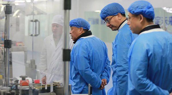 呂曉光市長隨后深入珍寶島凍干制劑智能生產車間,著重了解了企業產品智能制造生產全過程。對智慧制藥工業體系及數智化管理系統運營能力給予好評。